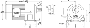 CH..SZ(CH..SZB) 臥式附三相縮框鋁殼(剎車)馬達減速